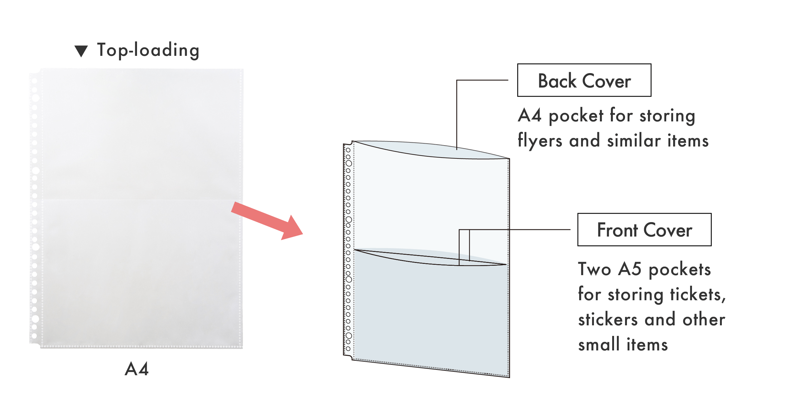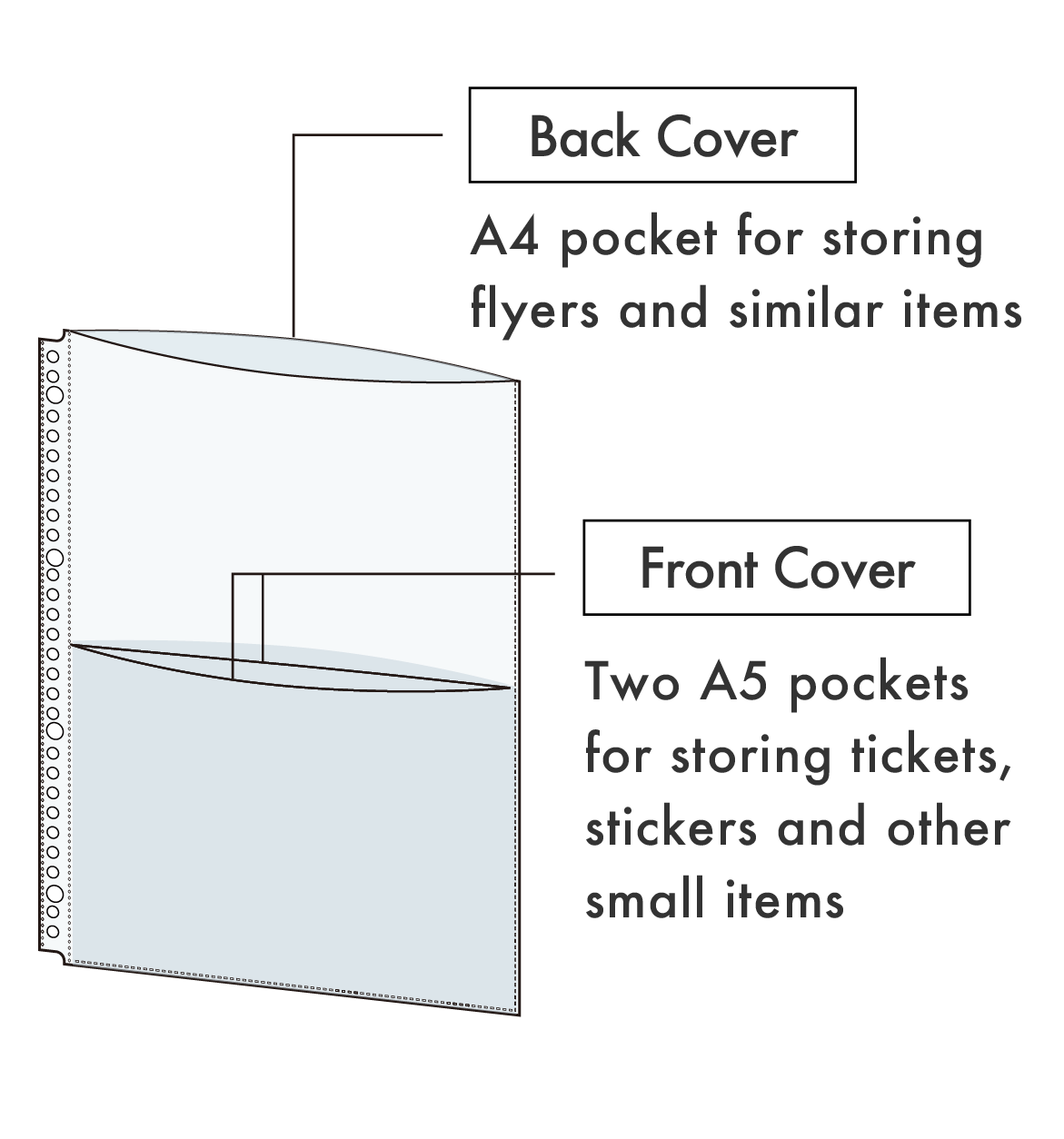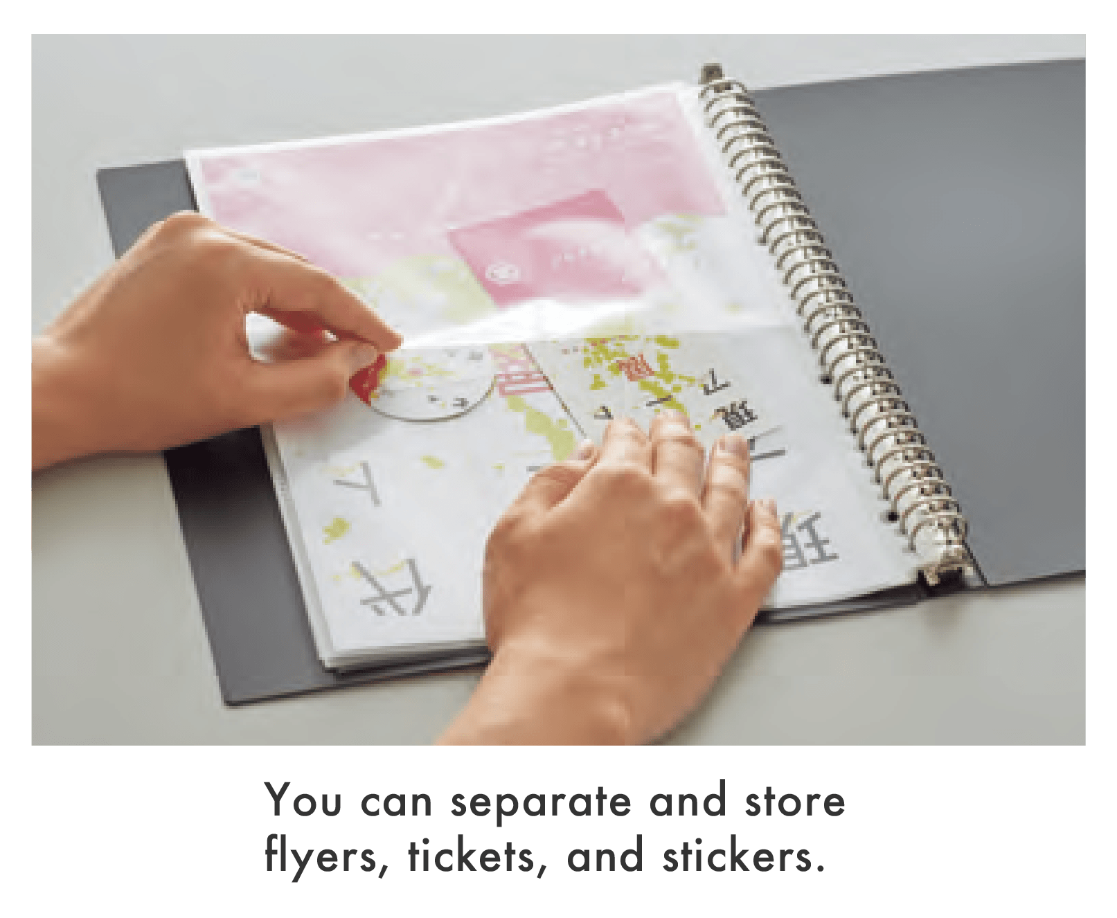 Clear book for organizing and storing tickets, flayers, and more in one pocket.